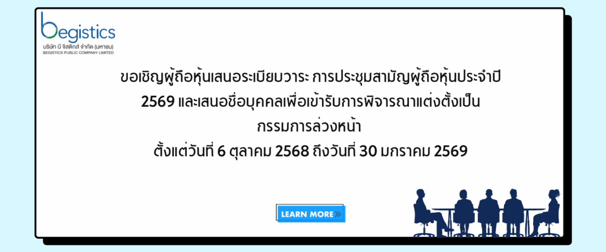 บริษัท บีจิสติกส์ จำกัด (มหาชน) คือ ผู้ให้บริการด้านโลจิสติกส์ในประเทศไทยแบบครบวงจร เป็นผู้ส่งมอบคุณค่าด้านโลจิสติกส์และซัพพลายเชนแก่พันธมิตรทางการค้าเพื่อการเติบโตที่ยั่งยืน